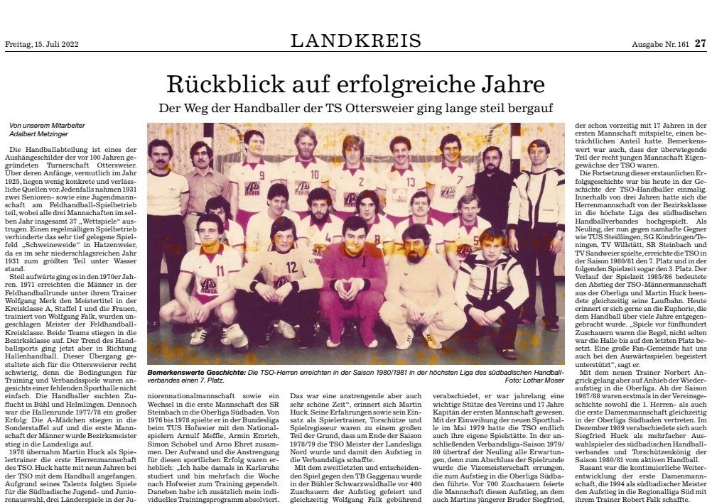 Ottersweier gilt auch heute noch als Handballhochburg. Von den Glanzzeiten erzählt dieser Artikel